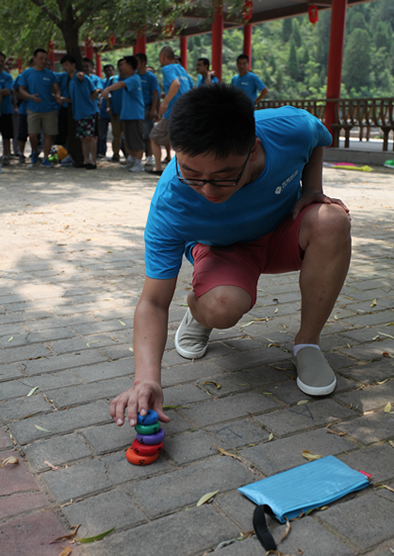 由于當日氣溫比較炎熱,室外拓展進行了團隊塔、愛的傳遞等運動量低但需要團隊合作才能過關的項目。為了能完成教官布置的挑戰,各小隊都能緊密協作,合理分工,整個挑戰過程中除了環環相扣的團隊合作,也不乏個人智慧的閃現。