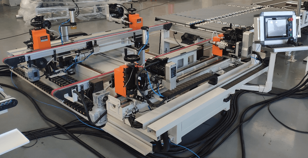 ☆?設(shè)置有自動(dòng)傳輸帶裝置,可連入窗扇組裝線(xiàn)使用,實(shí)現(xiàn)窗扇的自動(dòng)送入、自動(dòng)定位、自動(dòng)鉆孔;